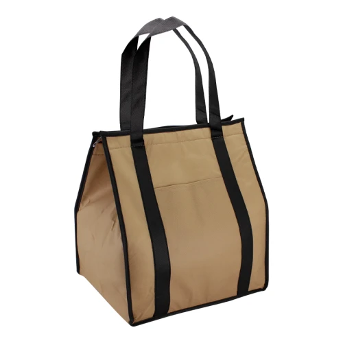 Cooler-Lonchera grande con bolsillo delantero, en tela no tejida (TNT) de 80g/m2. Interior en tela PVC metalizado aislante.