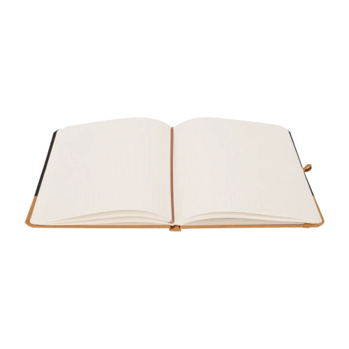 IBIZA es el equilibrio ideal entre diseño ejecutivo y conciencia ambiental. Este cuaderno A5 de tapa dura combina cuero reciclado en tono marrón con detalles en PU negro, creando una estética sobria y profesional sin perder su esencia sostenible. Sus 80 hojas punteadas en papel marfil de 70 g ofrecen el lienzo perfecto para ideas, esquemas o apuntes. Incluye cinta marcadora, elástico en tono marrón y soporte para bolígrafo, pensado para acompañarte en la oficina, reuniones o procesos creativos. El cuero reciclado utilizado refleja un compromiso con la reutilización responsable, mientras que el papel está diseñado para una escritura fluida y organizada. IBIZA es ideal para marcas que desean obsequiar utilidad con carácter y propósito.