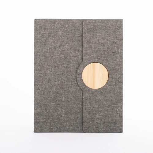TAHITI es un cuaderno A5 que armoniza la elegancia moderna con un firme compromiso ambiental. Su cubierta de tela Oxford fabricada con botellas plásticas recicladas (RPET) y el delicado detalle de bambú natural en el cierre magnético reflejan una fusión única entre tecnología sostenible y materiales nobles. Sus 80 hojas punteadas en papel marfil de 70 g brindan el espacio ideal para esquemas, ideas y notas organizadas, mientras su cinta marcadora y soporte elástico para bolígrafo añaden funcionalidad al diseño. Disponible en gris o azul, TAHITI representa una nueva forma de regalar utilidad con propósito. El RPET, además de reducir residuos, cuenta con certificación GRS, que garantiza procesos de reciclaje social y ambientalmente responsables. Ideal para marcas que desean escribir una historia alineada con sus valores.