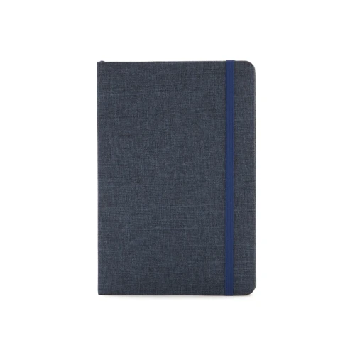Cuaderno con tapa de tela 300D en dos tonos. Hojas internas de 70 gramos, con 80 hojas en formato rayado. Dimensiones: 14 x 21 x 1,4 cm. Daily Book