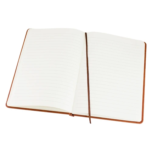 Cuaderno tamaño A5, con cubierta de cartón piedra forrada en PU simil cuero de 3mm de espesor. Interior 80 hojas lineadas amarillas de 80gsm. Incluye banda separador de hojas al tono. Presentación individual en bolsa de polipropileno.
