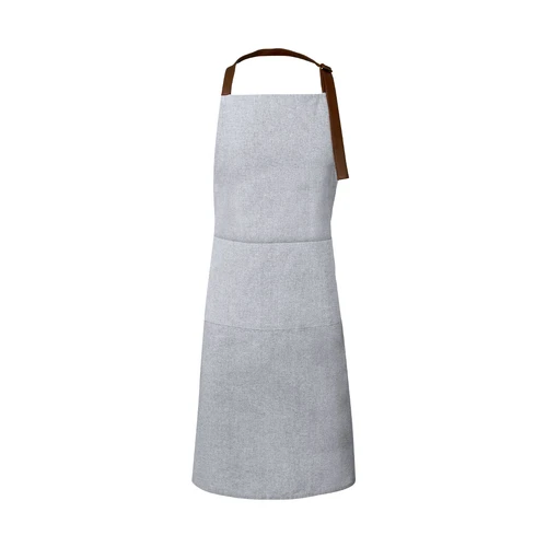 Delantal de línea nature en material RPET, elaborado a partir de plástico reciclado, para así fomentar la reutilización de residuos plásticos y ayudar a la sostenibilidad del planeta. De corte por debajo de la rodilla, con cintas de ajuste en resistente polipiel y amplio bolsillo frontal. Etiqueta en bolsillo con distintivo RPET.