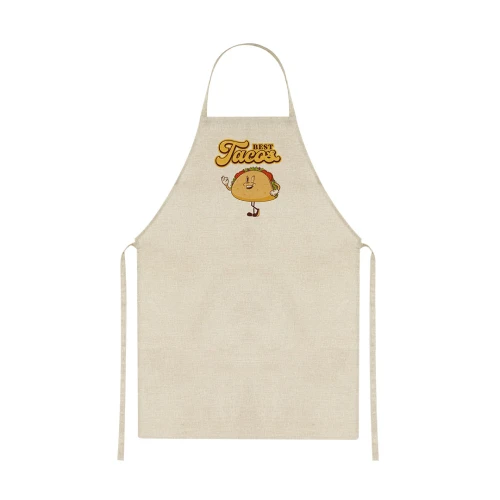 Delantal fabricado en suave y resistente poliéster, ideal para personalización mediante impresión por sublimación.