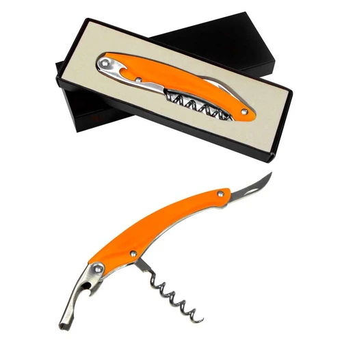 Descorchador - destapador - abresellos de Acero Inoxidable con Mango Ergonómico color Frozen. Presentación en caja negra laminada opaca.
