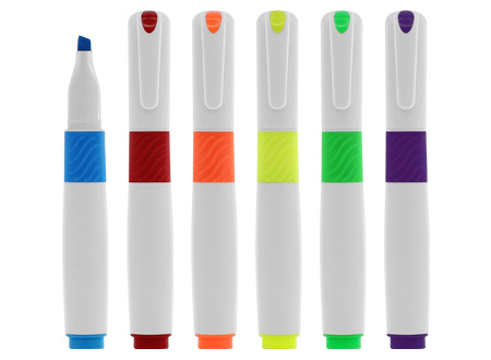 Destacador "Soft", cuerpo plástico blanco, terminales de color flúor.