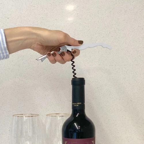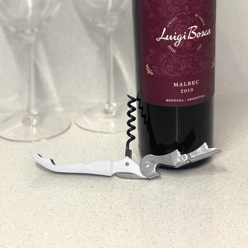 12,1 x 2 x 1 cm. Acero inoxidable 420. Peso: 52g. Destapador sacacorchos dos tiempos de vinos, pintura mate y detalles en color plata. Sierra afilada para sacar la cubierta o capsula de la botella. Presentación en caja de regalo.