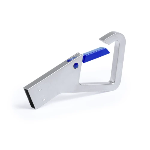 Memoria USB de 8GB de capacidad de acabado metálico y con original diseño de mosquetón con cierre en variada gama de colores. Presentada en estuche metálico individual con ventana e interior troquelado en suave espuma.