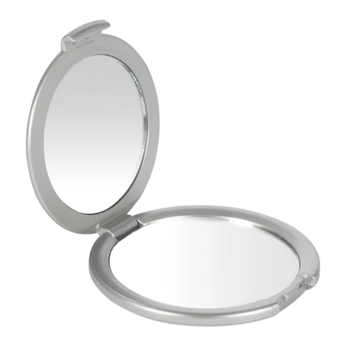 Espejo plástico plateado redondo doble, contiene 1 espejo normal + 1 espejo con aumento.