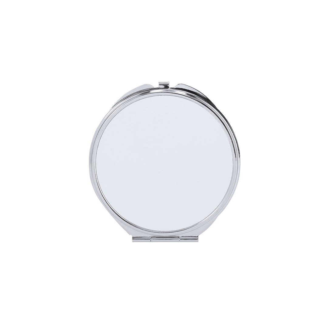 Espejo plegable metálico con placa para sublimación (no integrada en el producto, ideal para imprimir y pegar posteriormente). Con dos espejos interiores: 1X y aumento 2X. 1 Aumento 2X