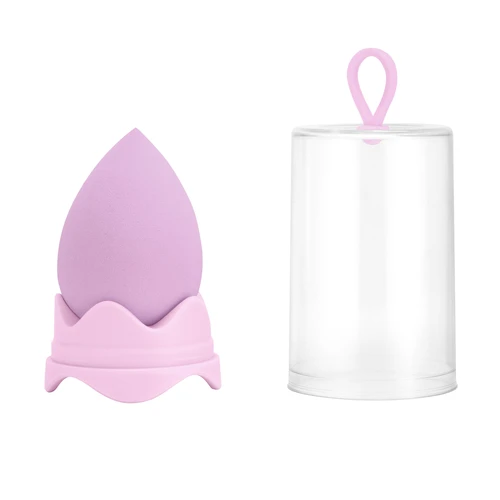 6 x 4 x 4 cm. Esponja PP. Esponja de maquillaje. Estuche de plástico transparente (Ø 4,5 x 8,5 cm.) con gancho y base del mismo color que la esponja