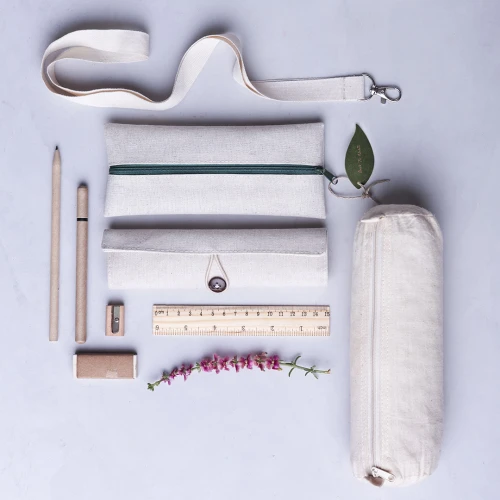 Práctico estuche de línea nature. De tamaño compacto en combinación de materiales yute y algodón. Con cierre de cremallera y hojita para publicidad en tirador.