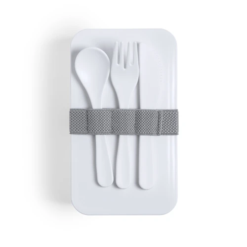 Fiambrera antibacteriana en resistente material PP de acabado sólido, libre de BPA. Dos compartimentos, cada uno de 700 ml de capacidad y cinta de seguridad con tenedor, cuchara y cuchillo. Los productos con tratamientos antibacterianos son capaces de reducir drásticamente las cargas bacterianas presentes en las superficies de los materiales, gracias a la incorporación de agentes microbianos permanentes estáticos, con alta efectividad para inhibir y prevenir la contaminación bacteriana. Artículo de acuerdo al estándar ISO 22196, que determina la actividad antibacteriana en materiales plásticos y superficies no porosas, lo que permite conocer la efectividad de inhibición microbiana que tienen los aditivos sobre los objetos tratados mediante una evaluación cuantitativa.