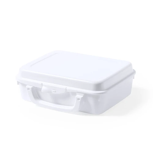 Fiambrera de 1L de capacidad, hecha en PP de color blanco. De fabricación europea y con certificación Food Grade, garantizando la seguridad cuando los alimentos entran en contacto con el material usado para fabricar el producto. Formato cuadrado, con práctica asa de transporte y cierre de seguridad.
