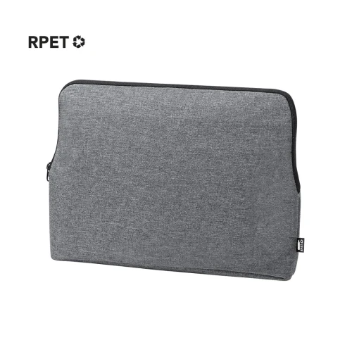 Funda para ordenador portátil de línea nature y en resistente 600D RPET efecto melange, elaborado a partir de plástico reciclado para así fomentar la reutilización de residuos plásticos y contribuir a la sostenibilidad del planeta. Detalles en negro y compartimento principal con cierre de cremallera. Interior totalmente acolchado y forrado, con distintivo RPET en etiqueta exterior.