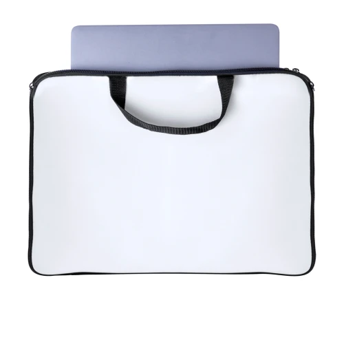 Práctica funda para ordenador portátil de hasta 15 pulgadas en soft shell. Especialmente diseñada para la sublimación con dos caras amplias para el marcaje, de cierre por cremallera de doble tirador en color negro y dos asas. Presentado individualmente en una bolsa reciclada.