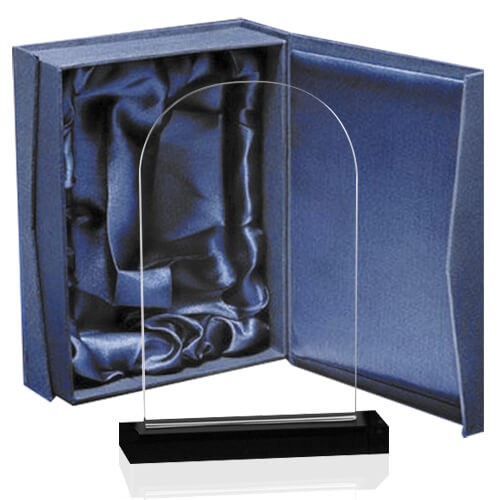 Galvano de cristal con un alto índice de refracción. Perfecto para grabado láser. Presentación en estuche azul con interior de paño de seda y protección de aislapol.