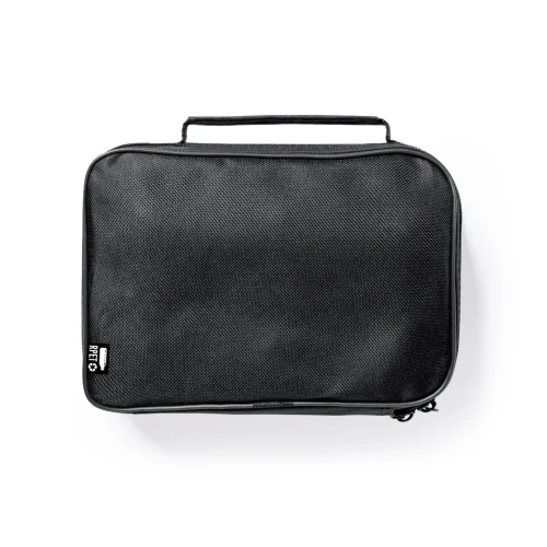 Juego de petanca de alta calidad. Incluye 6 bolas metálicas, boliche en madera y cuerda de medición. Set en resistente funda de RPET negra con asa de transporte y cierre de cremallera a juego. Distintitivo RPET en etiqueta exterior.El material RPET se elabora a partir de plástico reciclado, para así fomentar la reutilización de residuos plásticos y ayudar a la sostenibilidad del planeta.
