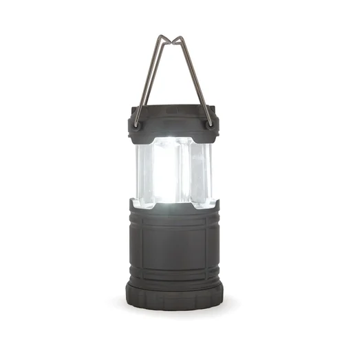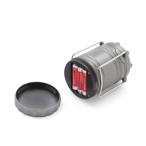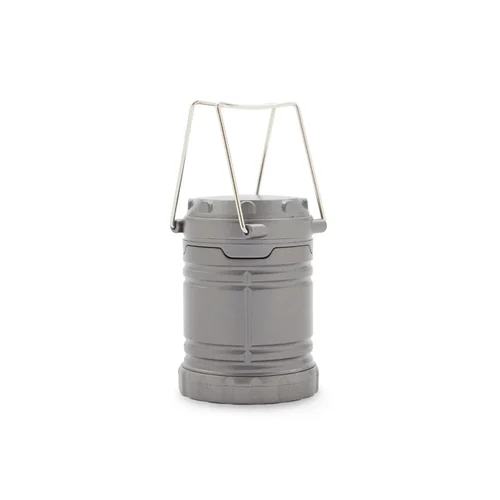 Linterna retráctil de tamaño compacto, fabricada en ABS de color gris. Funciona con 3 pilas AAA (incluidas). Ideal para camping y aventuras al aire libre. Dimensiones: 6,85 x 9,5 cm.