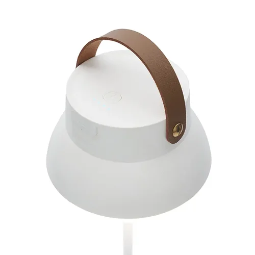 La Lámpara recargable, cuenta con un cómodo agarre superior que facilita su transporte, y también con un sistema retráctil que permite usarla como lámpara de mesa regulable en altura y colgarla en cualquier espacio.
