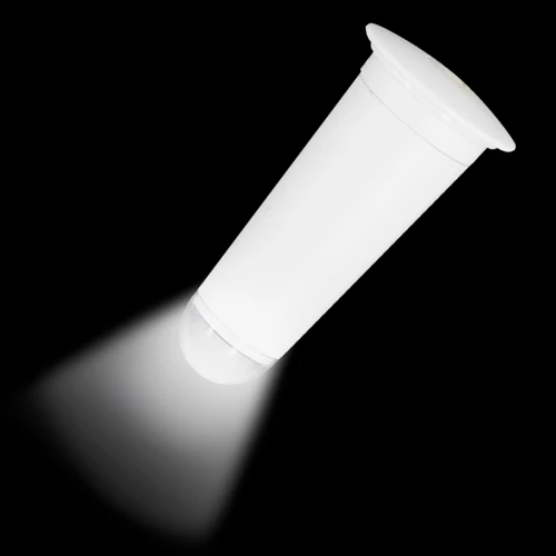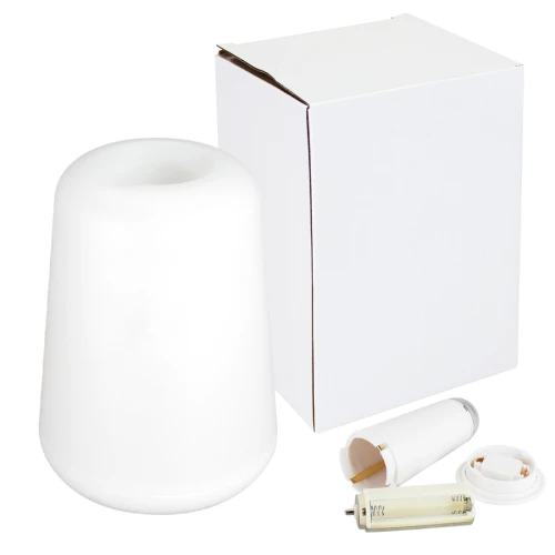 Lámpara de sobremesa de luz cálida amarilla, con luz LED removible. Usa 3 pilas AAA (no incluidas). Gran superficie de impresión. Presentación en caja de regalo de cartón blanco.