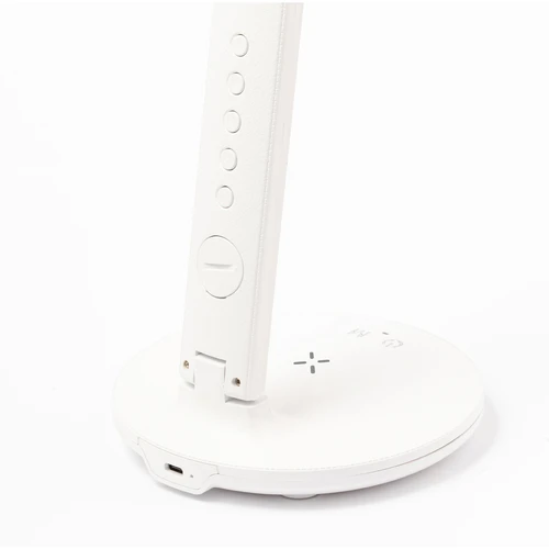 Lámpara multifunción plegable todo en uno, fabricada en resistente ABS blanco con acabado imitación piel. Provisto de 60 LEDs y 3 posiciones de iluminación (cálida, fría y media), con intensidad de luz regulable mediante el botón táctil de la base. Extensible y fácil de orientar, con pantalla de LCD integrada y retroiluminada, que marca hora, fecha, día y temperatura. Con botones de ajuste en la parte trasera y pila de botón incluida para guardar los datos. Incluye un cargador inalámbrico 10W integrado en la base, con entrada Tipo C y compatible con dispositivos móviles de carga inalámbrica. Con cable cargador Tipo C, y manual de instrucciones en español e inglés. Presentada en una atractiva caja de diseño kraft.