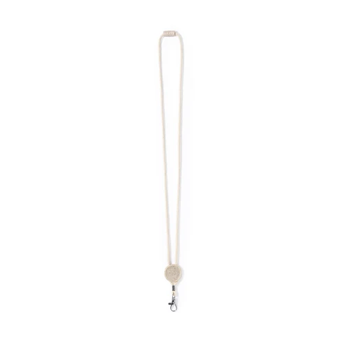 Lanyard de línea nature fabricado en resistente algodón 100%. Accesorio circular para personalización y cierre de seguridad en cuello fabricados en caña de trigo, con mosquetón metálico giratorio.La caña de trigo fomenta la utilización de materias primas naturales, reduciendo así las emisiones contaminantes.