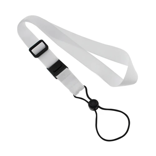Lanyard de polyester liso de 2.5 cm de ancho para sublimación, con cordón porta-botella con pretina.