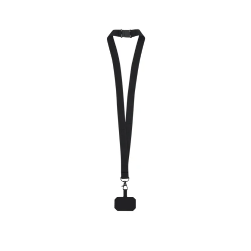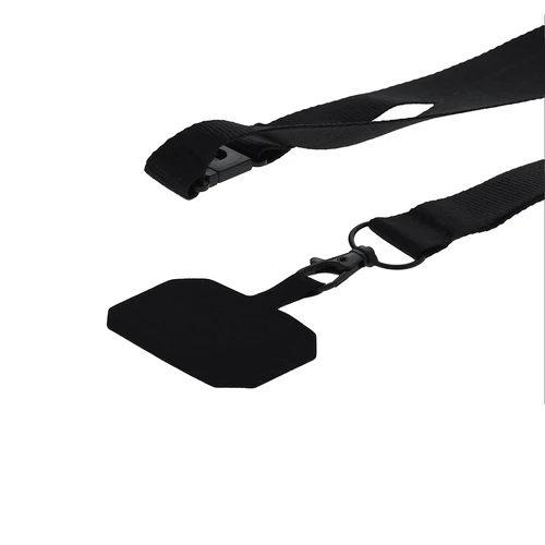 Original lanyard soporte en suave poliéster, adaptable por el accesorio de transporte para situar entre la funda y el smartphone. Cinta de transporte a juego, mosquetón metálico giratorio en color negro y dispone de accesorio de seguridad en el cuello.
