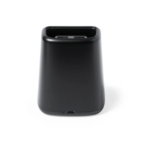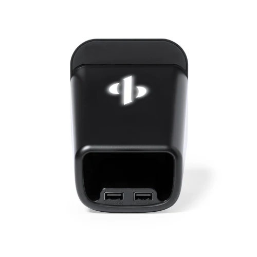 Lapicero multifunción con luz, especialmente diseñado para marcaje en láser e iluminar el logotipo.Con soporte para smartphone y cargador inalámbrico 15W integrado, compatible con dispositivos equipados con tecnología de carga inalámbrica Qi. Incluye 2 salidas USB (5V DC 2A)y cable de carga Tipo C de 150 cm. Base antideslizante y presentado en caja individual de diseño kraft, con manual de instrucciones en español e inglés.Fabricado conforme a los estándares RoHS y en cumplimiento con los siguientes requisitos de seguridad:Sistema de protección contra sobrecalentamiento.Sistema de protección contra sobrecarga.Sistema de bloqueo para evitar cortocircuitos.