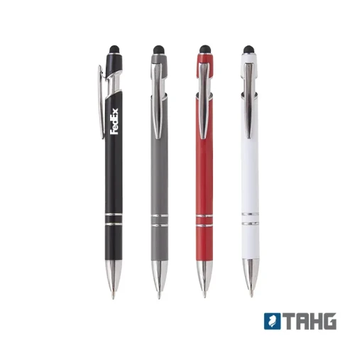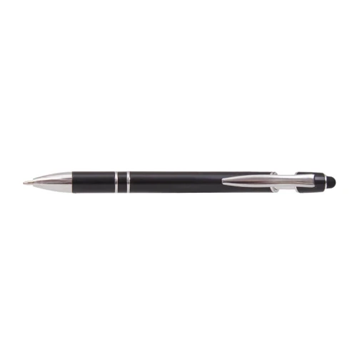 Lápiz de cuerpo sólido, realizado en ABS. Tinta de color azul. Apertura con con clip retractil. Posee touch para pantallas táctiles.