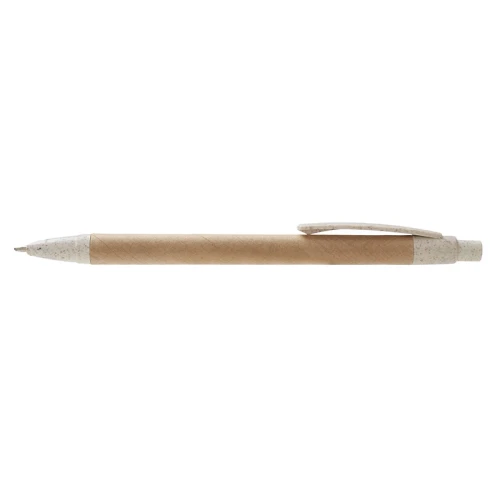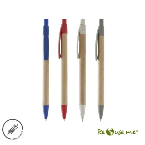 Lápiz realizado en celulosa y Wheat Straw, pasta de tallo de trigo, un material sustentable que reduce el consumo de plásticos vírgenes. Cuenta con clip de apertura retráctil. Tinta azul
