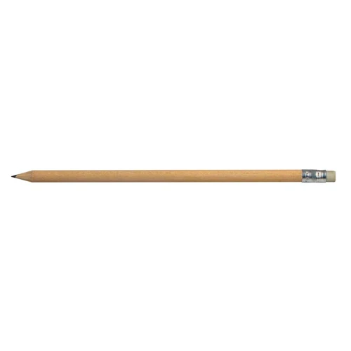 Lápiz grafito largo de madera barnizada. Cuerpo 100% cilíndrico, ideal para imprimir logos sin problemas. Incluye goma de borrar y viene con punta lista.