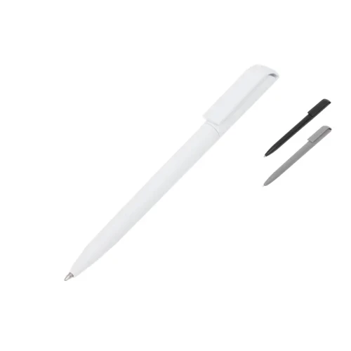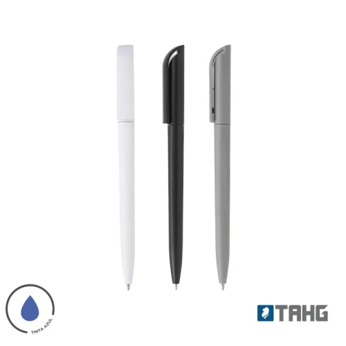 Lápiz plástico de cuerpo sólido. Tinta de color azul. Escritura aproximada de 500 mts. Apertura con rotación de cuerpo
