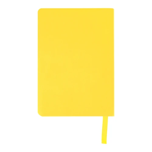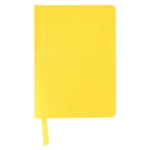 Libreta tamaño A6, con cubierta de PU eco-cuero de 2mm de espesor y lomo pintado de color al tono. Interior 80 hojas lineadas amarillas de 80gsm. Incluye banda separador de hojas al tono. Presentación individual en bolsa de polipropileno.