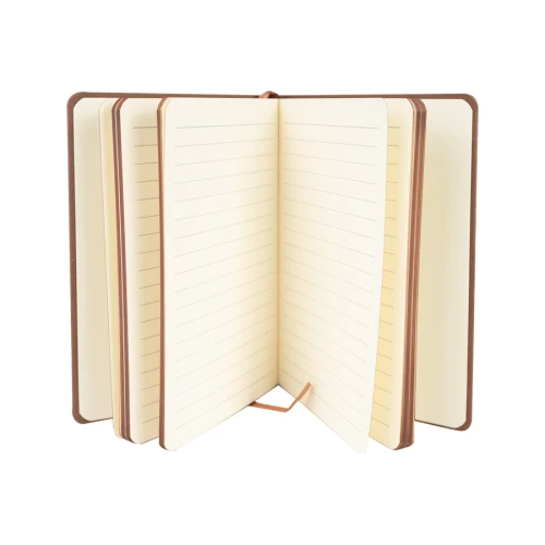 Libreta tamaño A6, con cubierta de PU eco-cuero de 2mm de espesor y lomo pintado de color al tono. Interior 80 hojas lineadas amarillas de 80gsm. Incluye banda separador de hojas al tono. Presentación individual en bolsa de polipropileno.