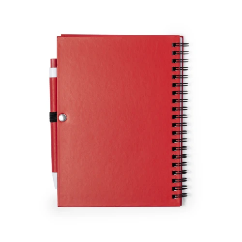 Set de libreta y bolígrafo. Libreta de anillas con tapas de suave tacto fabricado en cartón reciclado, y bolígrafo a juego. Contiene 70 hojas lisas con soporte para bolígrafo. Disponible en una atrevida gama de colores.