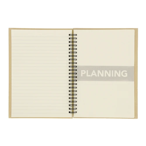 Libreta con planificador mensual incluido. Con tapas rígidas de carton reciclado. Incluye: -80 hojas color crema con líneas y marca de corte fácil -13 hojas de planificador mensual no fechado, con vista de calendario mensual -2 hojas adicionales para notas, con disposición a rayas Perfecta para planificar tu mes, tomar apuntes o notas y organizar tu día a día. El cartón reciclado proviene del reaprovechamiento de excedente de fabricaciones y reciclaje de papel en el final de su vida útil, convirtiéndose en un lienzo ecológico y sostenible.