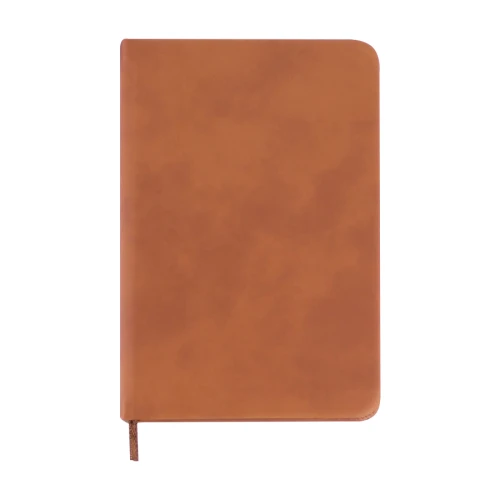 Libreta tamaño A6, con cubierta de cartón piedra forrada en PU simil cuero de 3mm de espesor. Interior 80 hojas lineadas amarillas de 80gsm. Incluye banda separador de hojas al tono. Presentación individual en bolsa de polipropileno.