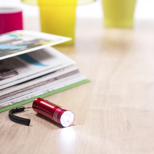 Linterna de 9 ledes de alto poder de iluminación. Con resistente cuerpo en aluminio, pulsador protegido con recubrimiento de resistente goma y cinta de transporte. Alimentación a pilas: 3xAAA no incluidas. Presentada en caja individual.