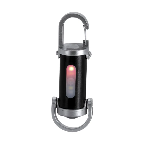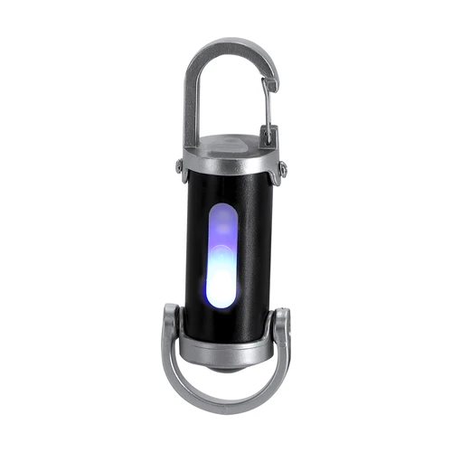 Linterna fabricada en ABS con mosquetón de transporte. 4 LEDs, sistema de encendido de botón y 8 luces COB. 7 posiciones de luz fija e intermitente. Práctica asa de transporte en parte inferior. Batería recargable de 400mAh, con cable de carga Tipo C incluido de 5V.