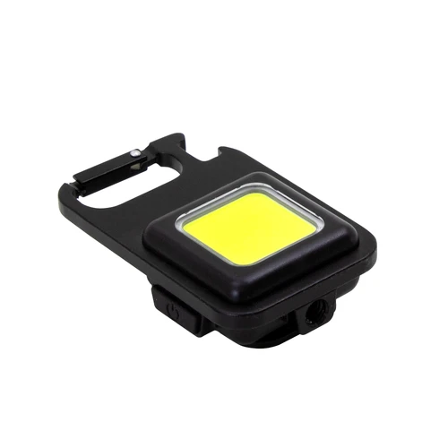 Potente, compacta y moderna.Linterna portátil recargable. Con destapador y mosquetón incorporado. Imán al dorso y soporte con pie para diferentes posiciones. Luz led de alta potencia: 3 intensidades de iluminación (alta, baja e intermitente). Batería recargable de 300 mAh. Luz led indicadora de carga. Puerto USB-C y cable de carga de 30 cm de largo color negro. Medidas: 7,2 x 4,5 x 2 cm.