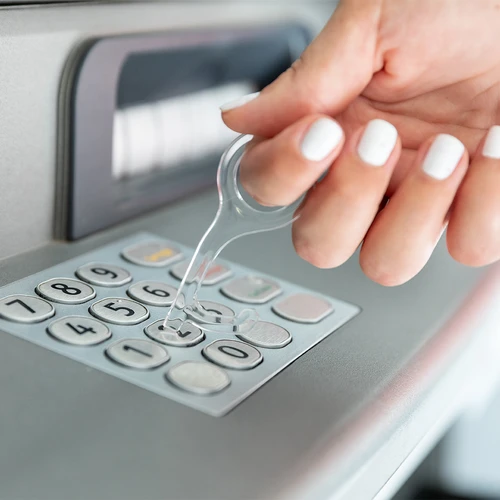 Llavero higiénico anti-contacto, fabricado en original y resistente material acrílico de acabado transparente. Especialmente diseñado para evitar tocar con las manos superficies de uso común (picaportes de puertas, interruptores, grifos de uso público, cajeros automáticos...). Con cómodo troquel para el dedo y presentado en bolsa individual de diseño. Recomendado para marcaje en tampografía.