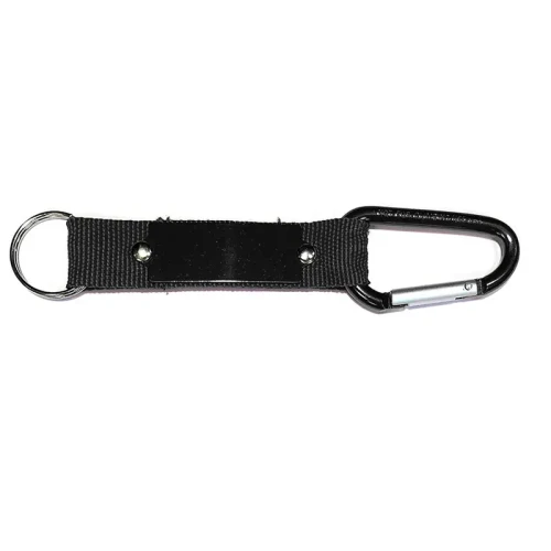 Llavero tejido de Polyester con un mosquetón de seguridad y una placa de metal para personalizar. La placa puede ser utlizada para domes o grabado láser. Medidas: 13 cm x 3,1 cm incluído el anillo (anillo de 25 mm). TAHG.