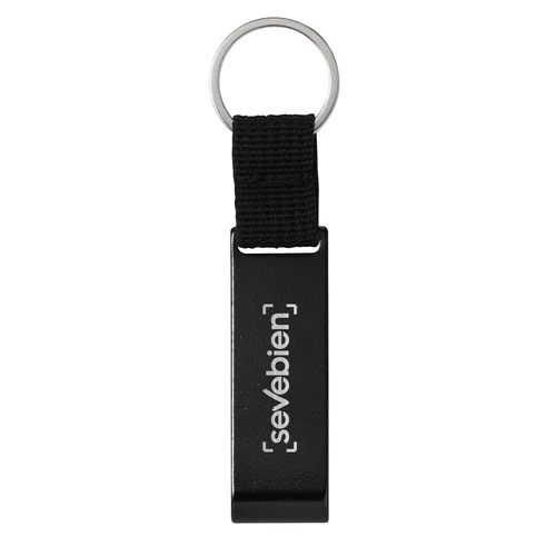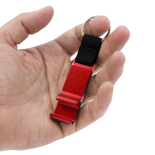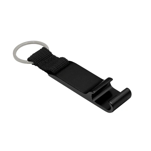 Elegante y práctico, el infaltable de bolsillo.Llavero destapador con correa de poliester color negro de 2.5 x 1.5cm. Pintura acabado brillante. Medidas: 9,5 x 1,9 cm.