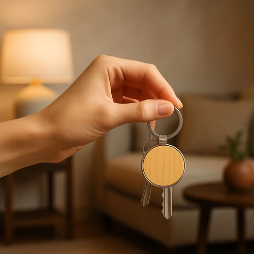 Lleva un toque rústico y clásico en tu bolsillo. Llavero con forma circular. Estructura metálica con aleación de zinc con acabado brillante y panel frontal de bambú barnizado. Medidas: 7,5 x 4 x 0,7 cm.
