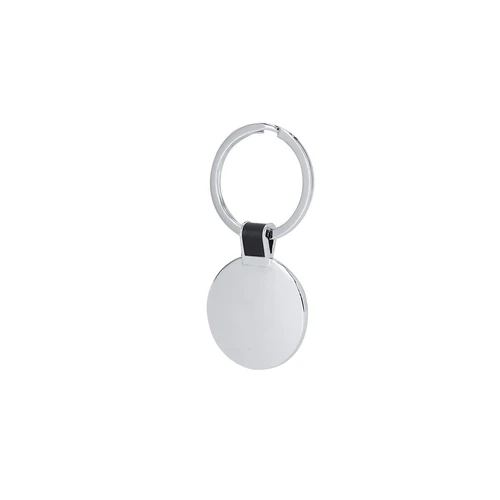 Llavero metálico con detalle en color negro.
