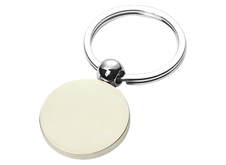 Llavero Metálico Redondo Plano. Presentación en estuche laminado negro con cuna aterciopelada.