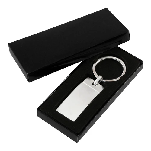Llavero Metálico satinado, modelo "Wave". Presentación en estuche laminado negro con cuna aterciopelada.