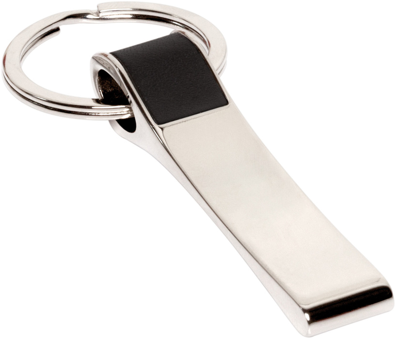 6,3 x 1,4 cm. Metal y símil cuero. Llavero plano con detalles en la parte superior símil cuero. Presentación en caja de regalo.