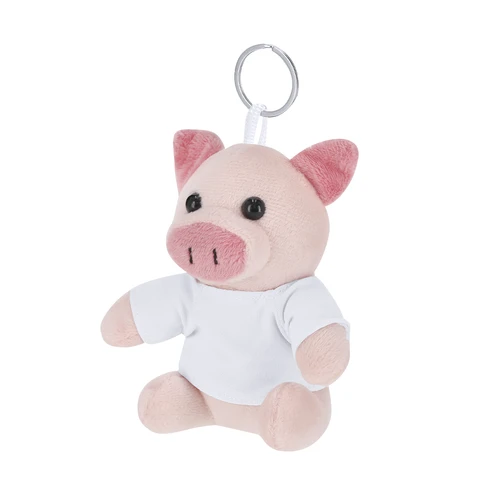 Llavero cerdito de peluche con camiseta personalizable con anilla metálica para fácil transporte, ideal para sublimación.